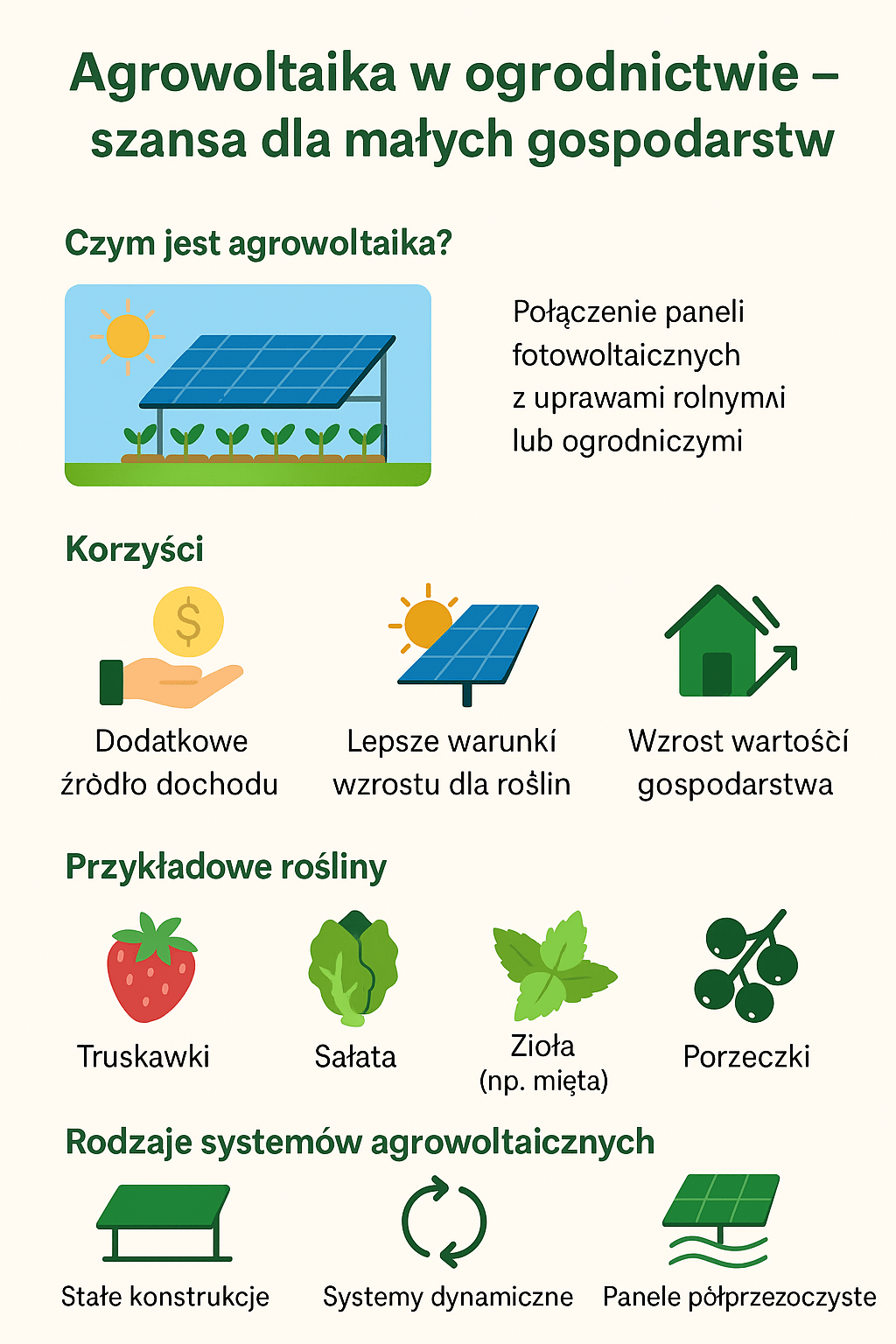 Agrowoltaika to rozwiązanie przyszłości, które może już dziś realnie zmieniać oblicze polskiego ogrodnictwa. Dla małych gospodarstw to: